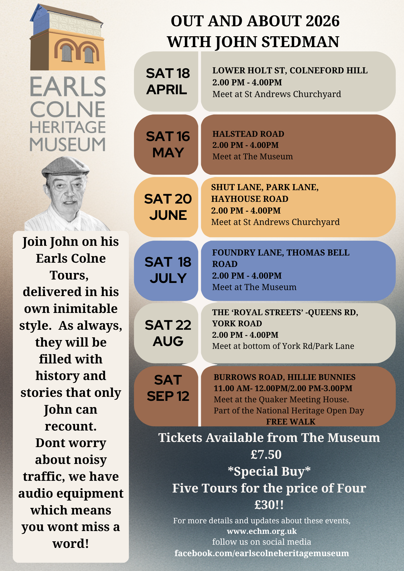 Earls Colne Heritage Museum will be looking at the industrial housing that was supplied for the workers of Hunt’s Atlas workers. By 1900 , the Atlas Works was the primary employer in the village. We will also be joining another Heritage Open Day organized by Essex Industrial Archaeological Group taking place at Silver End Village Hall on Sunday 13th September. More details later.